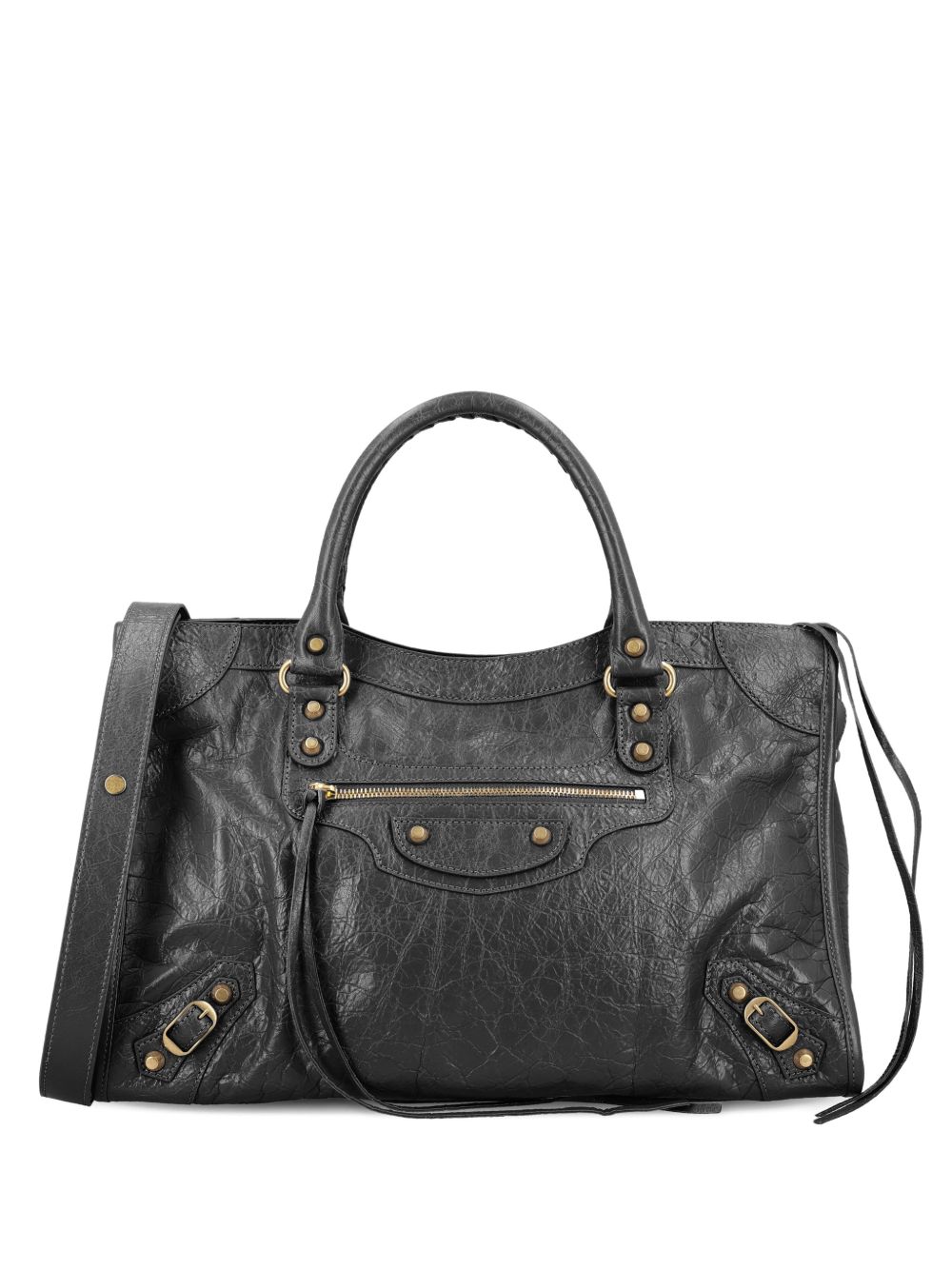 Crafted from supple grain leather, this Balenciaga bag showcases an exquisite blend of durability and luxury. The luxurious material intricately weaves texture and resilience, providing an exceptional feel against the skin while promising long-term wear. Elevated features like gold-tone hardware and a functional front zip pocket further enhance both its aesthetic and utility, catering to the obsessions of what true luxe feels like when daily life demands both style and versatility.