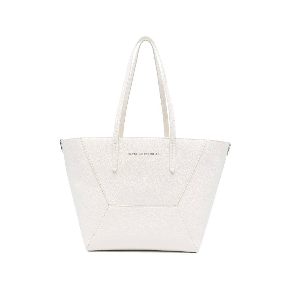 Crafted from premium grained leather, the Brunello Cucinelli Logo-print Tote Bag boasts an irresistible texture that feels luxurious to the touch while ensuring exceptional durability—an essential for daily wear. The subtle off-white hue accentuates its sophisticated design, lending an air of opulence to any outfit. Reinforced through expert construction, this piece is designed to withstand the rigors of frequent use, making it a versatile addition to any high-fashion wardrobe.
