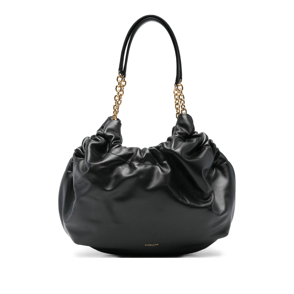 Crafted from smooth, supple grain leather, this shoulder bag showcases black gathered detailing, refining its aesthetic appeal. The use of high-quality materials ensures that the texture feels luxuriously soft against the skin, while its standout durability speaks to the impeccable high-end construction. With gold-tone hardware, the bag offers a touch of sophistication, making it suitable for both daytime chic and evening elegance.