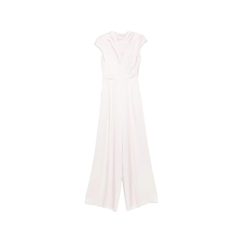 Crafted from an exquisite light pink fabric, this jumpsuit features a draped detail that beautifully falls across the body. The wide-leg design not only adds an element of flair but also delivers unparalleled comfort, allowing for free movement. With a sleeveless silhouette and V-neckline, the jumpsuit boasts a sultry charm that is both versatile and chic for a variety of occasions. Furthermore, the concealed rear zip closure highlights meticulous detail in its construction, ensuring a flawless fit that celebrates the art of luxury fashion.
