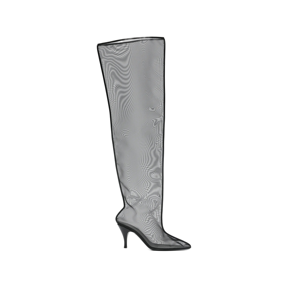 These heather black mesh heeled boots exude versatility while demanding attention. Pair them with a structured mini dress or high-waisted trousers to transition seamlessly from a sophisticated daytime look to an eye-catching evening ensemble. Complement with statement jewelry and a chic small bag to create a cohesive luxury ensemble that speaks volumes.