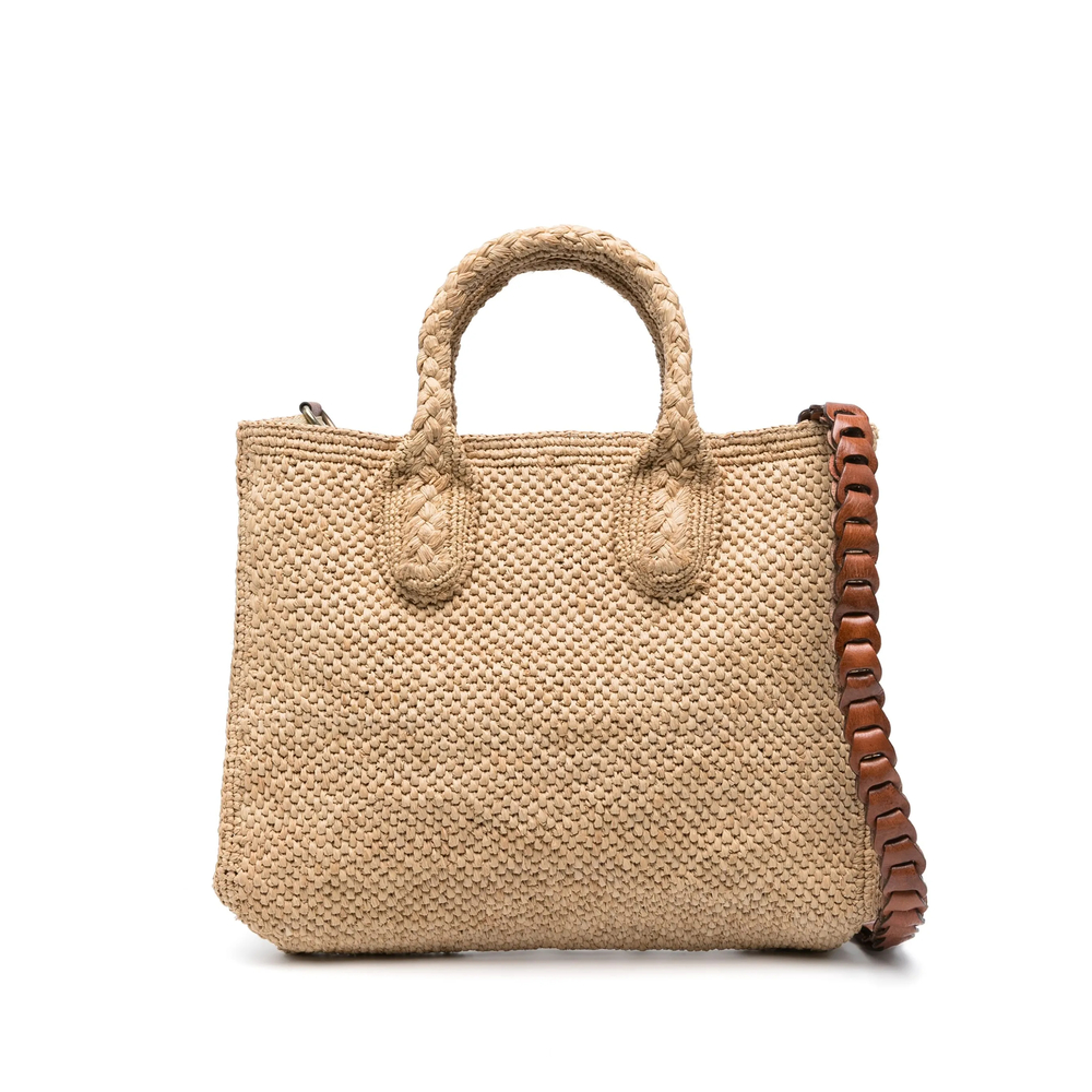 The Rary Woven Tote is crafted from natural beige raffia, a textured fiber renowned for its lightweight yet durable properties, making it an ideal choice for both everyday errands and elegant outings. This exquisite material feels soft against the skin while providing longevity through refined high-end construction methods. Enhancing its allure, the tote features a detachable leather shoulder strap and intricate braided top handles, ensuring that this piece doesn’t just look luxurious but is built to last.